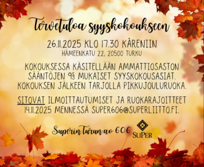 Jäsenkalenteri 2026Postitetaan marras-joulukuun aikana. Kalenteri postitetaan tänäkin vuonna kaikille superilaisille, joiden kalenteritilaus on voimassa. Tilauksen voimassaolon voit tarkistaa kohdasta Tuotteet. Jos et halua kalenteria, peruuta tilaus tuotteen ohjeen mukaisesti.